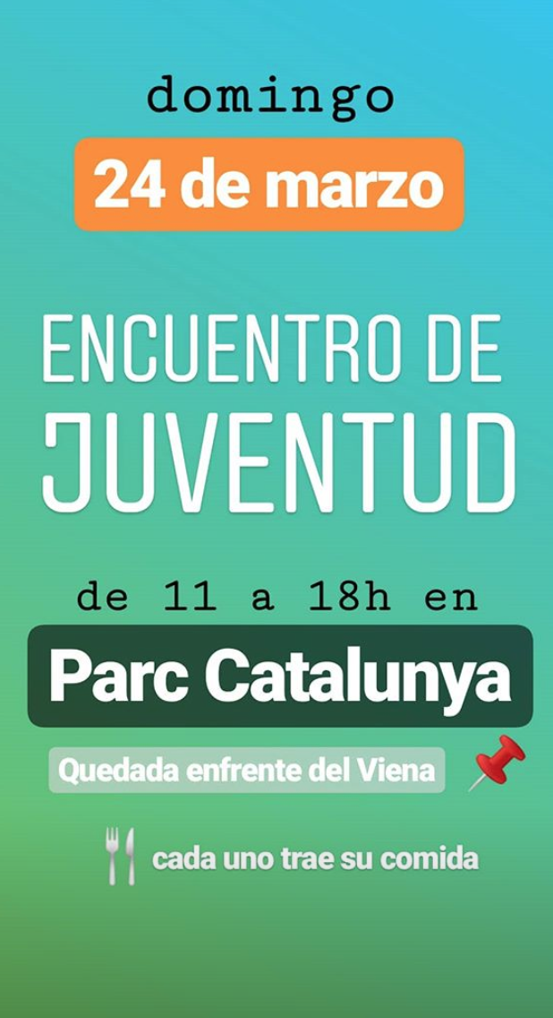 El próximo domingo día 24 de marzo se llevará a cabo un encuentro de juventud que tendrá lugar en el Parc Catalunya de Sabadell, y que se alargará hasta la noche con el pase de una peli.